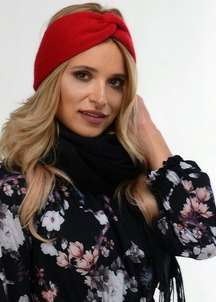 Krásná hřejivá čelenka - red