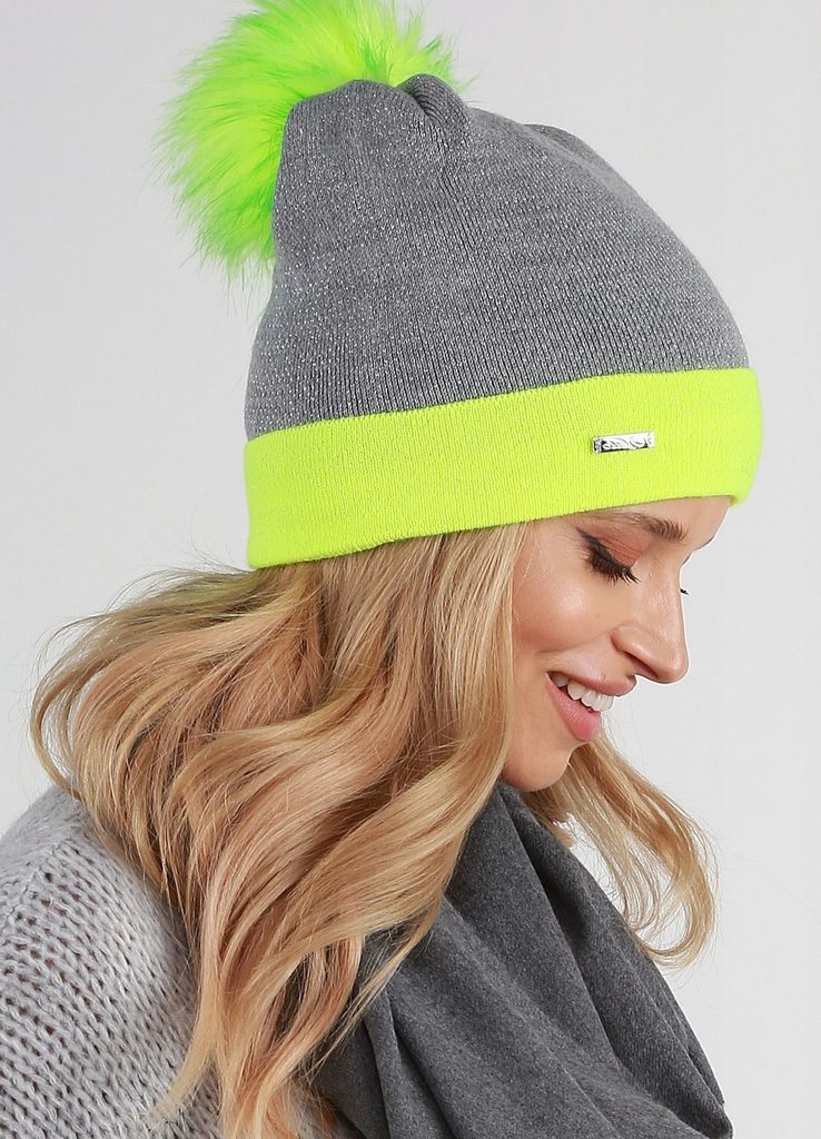 Krásná dámská čepice - Grey/Lemon